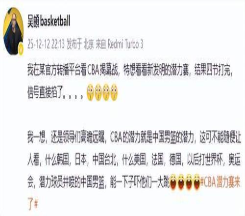 不得不說,媒體人真是太有意思了,明明都不滿意,還都不好意思說出來。就這樣的潛力賽,直接取消就完事了,真的不是人民想要看到的比賽,沒有意思,沒有價值,沒有意義,何必在人家都下班的模式下,還要人家再上來加班呢?