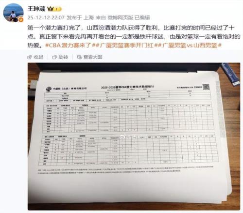 賈磊:“山西隊在CBA歷史上首個潛力賽上以27-24戰(zhàn)勝廣廈,贏得了CBA潛力賽歷史首勝!張寧、趙巖昊悉數(shù)登場,山西隊老將葛昭寶也獲得了寶貴的出場機會。”